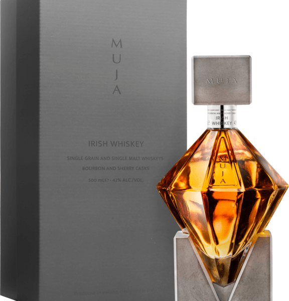 Muja Irish Whiskey is a premium blend that features a challenging triple distillation process and maturation in two different Bourbon and Sherry casks. It is a blend of single grain and single malt whiskies patiently aged in ex-bourbon and ex-sherry casks, combined to create a unique finish. The whisky is unfiltered and bottled at 42% ABV in 50cl bottles.